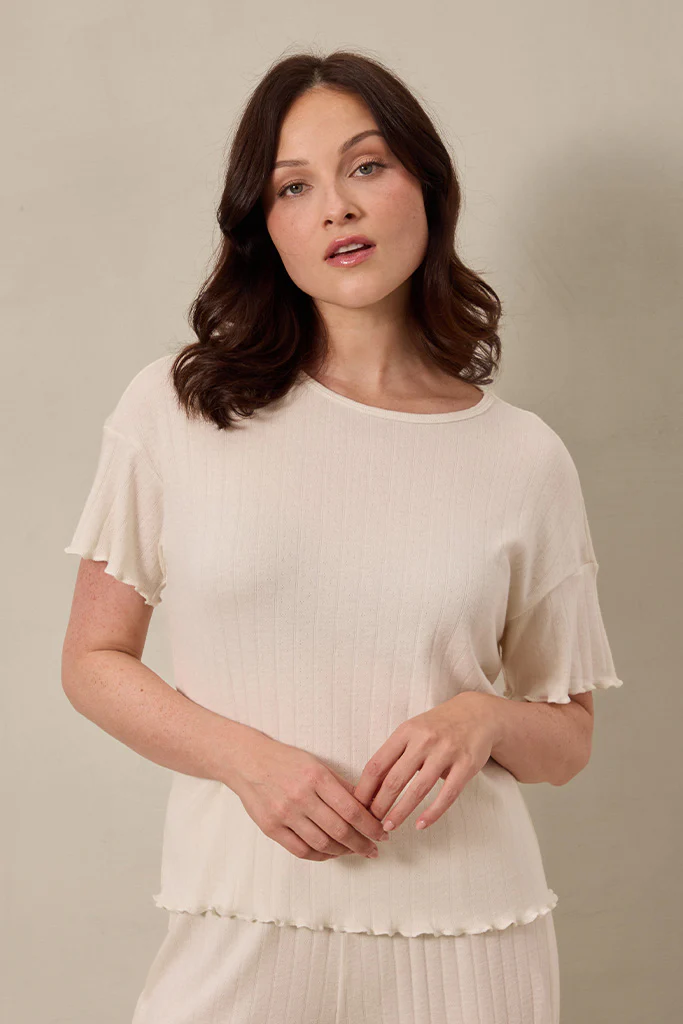 Delicate lettuce hem and pointelle detailing